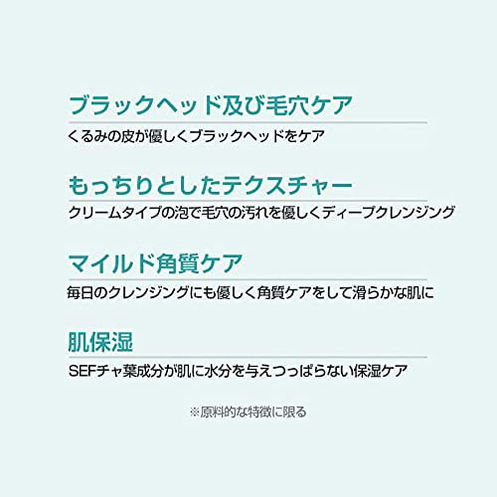 古くなった角質や毛穴の汚れをディープクレンジング。くるみの皮が優しく毛穴をケアし、SEFチャ葉成分が洗い上がりし っとり、つっぱらずにキメ細やかな滑らか肌に仕上げます。肌刺激テストをクリアし6つの無添加(クロルフェネシンフリー、ソールビッグ酸フリー、ベンジルアルコールフリー、ベンゾフェノン-3フリー、パラベン6種フリー、フェノキシエタノールフリー)で安心してお使いいただけます。